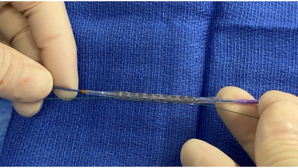 - Advancing the stent assembly in method # 1 through the sheath can be challenging. Being able to advance the anchoring wire adjacent to the stent through the sheath valve can potentially damage the anchoring wire tip. In that case, using a hemostat to open the valve while advancing the system tackles this problem.